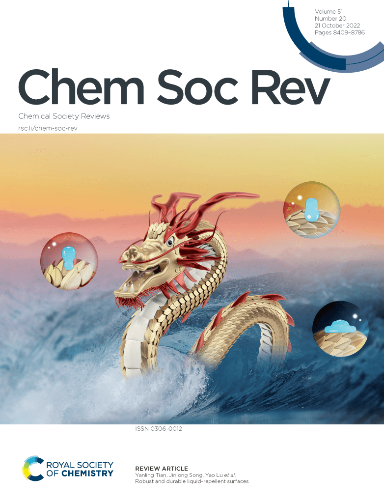 Our paper published in Chemical Society Reviews has been highlighted as the outside front cover. This paper provides a comprehensive review of design, fabrication, characterisation and application of robust and durable liquid-repellent surfaces. For more details, please go to F. Chen, Y. Wang, Y. Tian,* D. Zhang, J. Song,* C. R. Crick, C. J. Carmalt, I. P. Parkin, Y. Lu*, Robust and durable liquid-repellent surfaces, Chem. Soc. Rev. 2022, 51, 8476-8583.